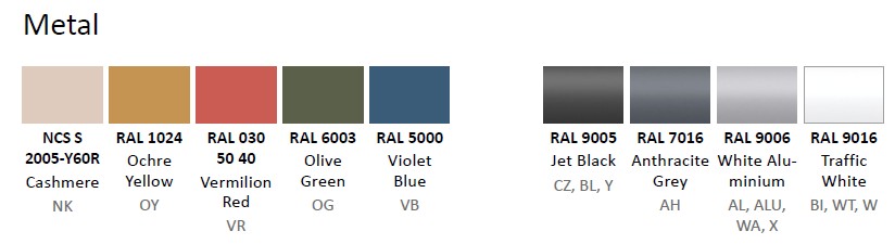 • Цвят на изработка основа: по избор от 9 цвята по RAL.