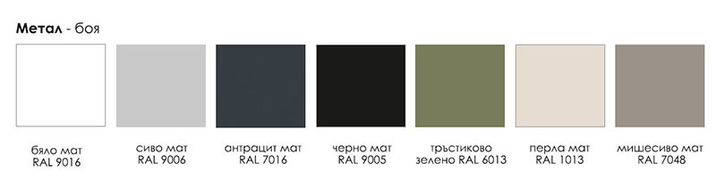 - Цвят на изработка метална основа: по избор от 7 цвята