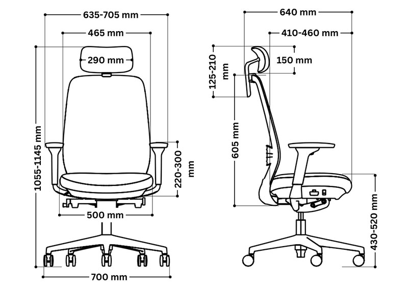 • 4D регулируеми подлакътници по височина, ширина, ъгъл и падове напред-назад.